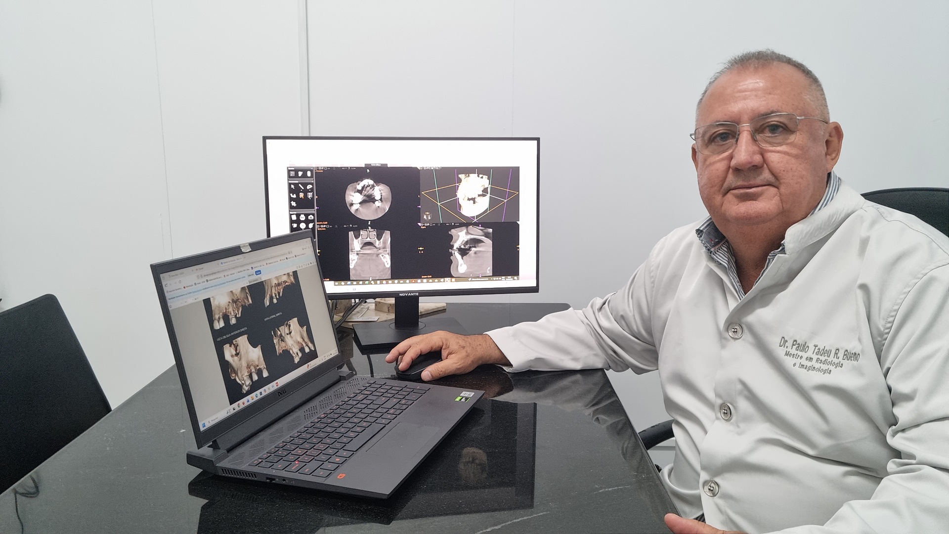 Temos várias tecnologias que colocamos a disposição dos cirurgiões dentistas para auxiliarem no diagnóstico e planejamento e desenvolvimento de suas atividades.