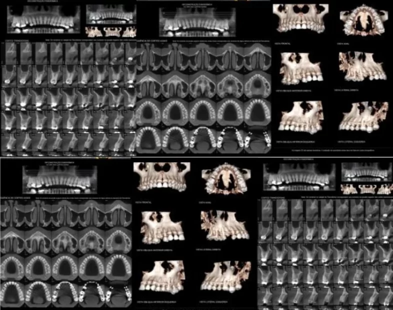- O exame fornece diversas “fatias” (cortes) da região, que são processadas por um software para criar uma imagem tridimensional detalhada da maxila.